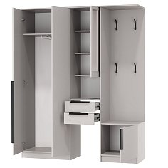 Модульные варианты позволят собрать комплект меблировки для помещения любой конфигурации и габаритов. Популярными являются комбинированные опции, сочетающие в себе разнообразные способы хранения вещей (отделы со створками, выдвижные ящики, открытые полки).